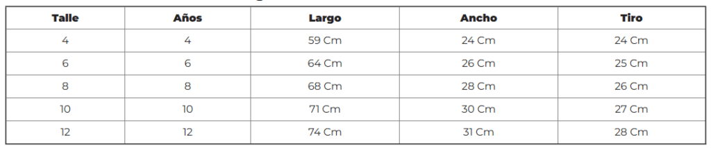 Talle Niño