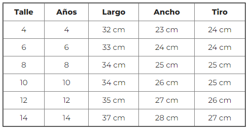 Talle Niño